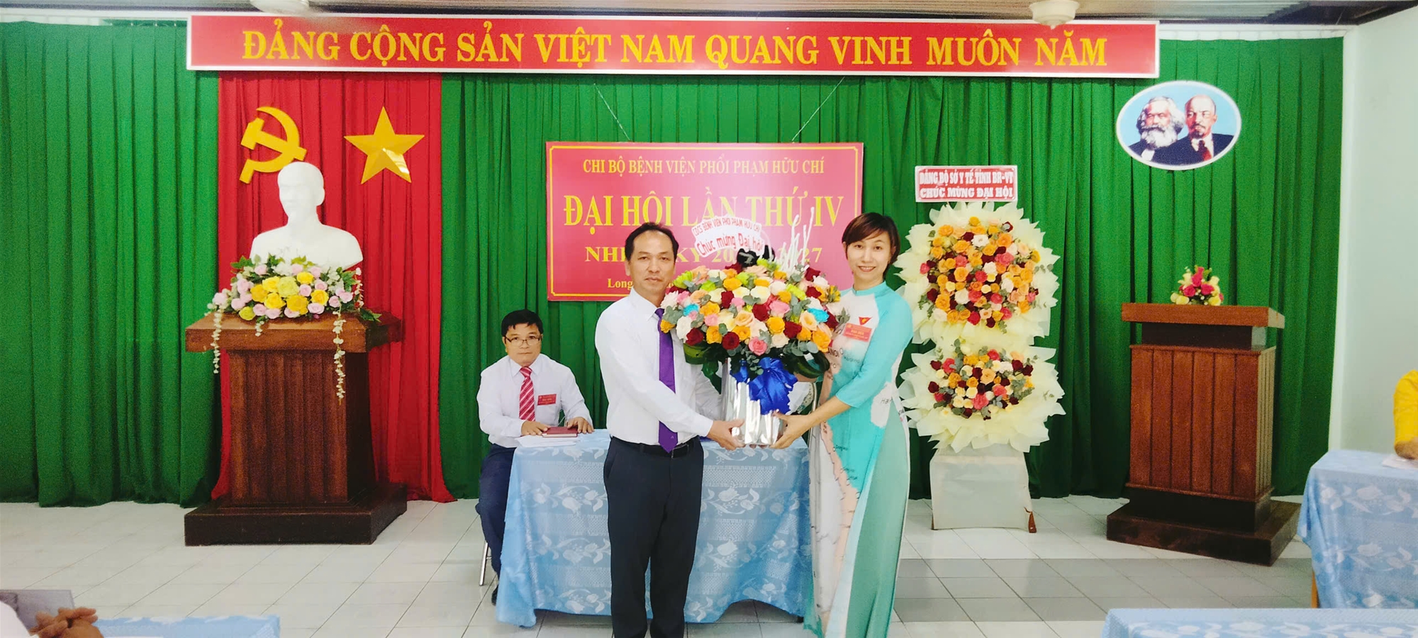 Đại diện Bệnh viện tặng hoa chúc mừng Đại hội