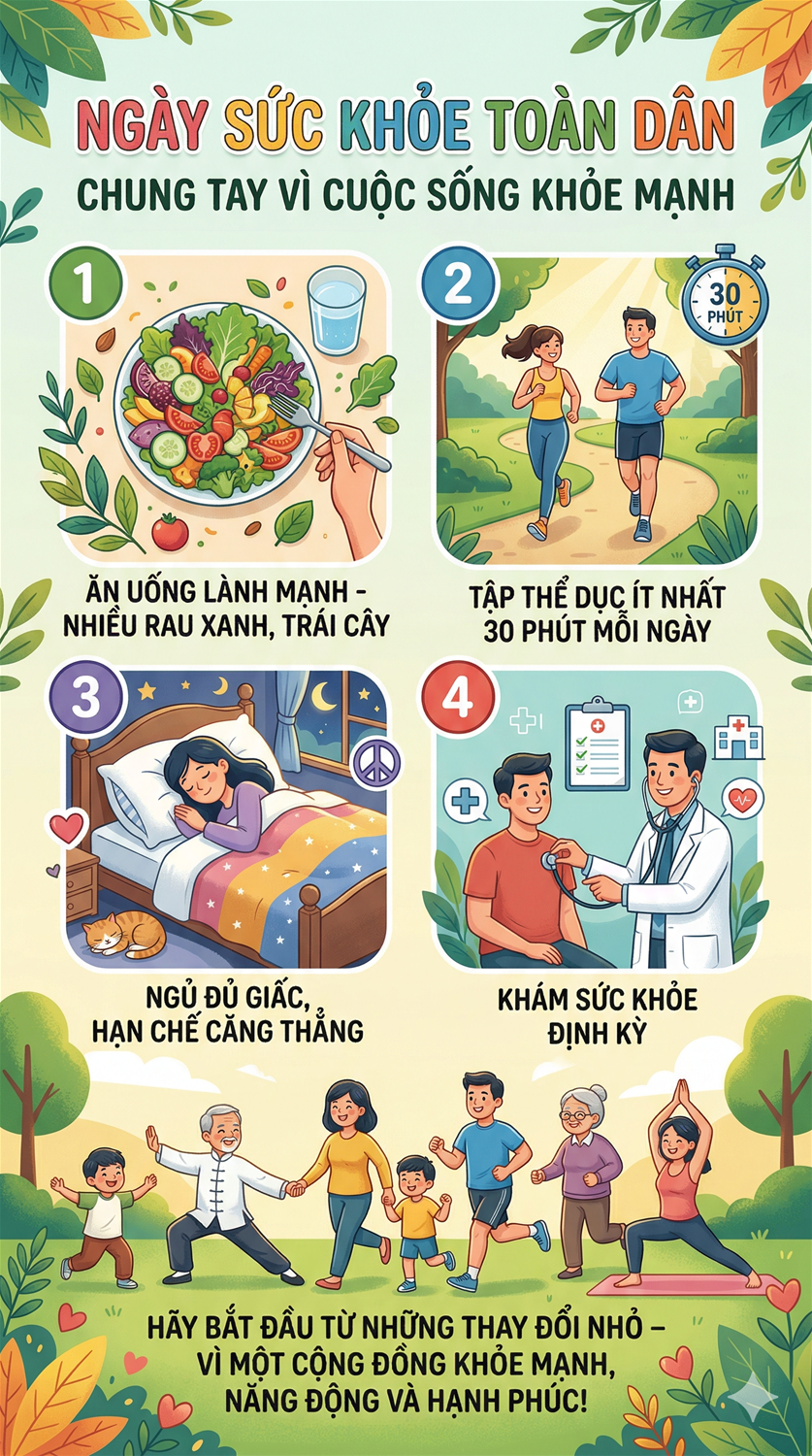 💚 Sức khỏe là tài sản quý giá nhất của mỗi chúng ta. Nhân Ngày Sức khỏe Toàn dân, hãy cùng nhau lan tỏa những thói quen tốt để nâng cao chất lượng cuộc sống!